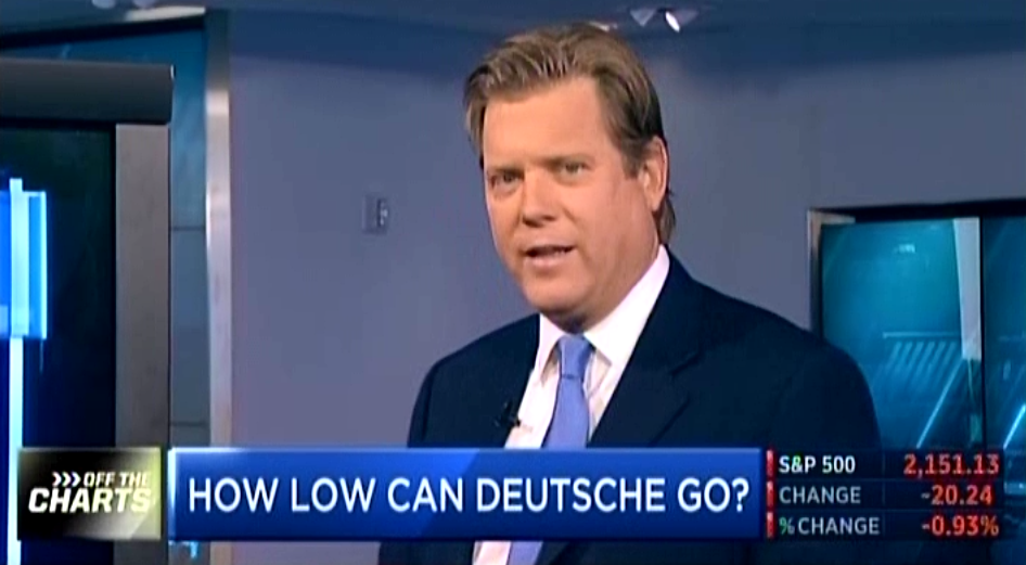 Carter Worth was given 4 minutes on Thursday's 5 p.m. program to warn everyone against buying DB, stating "it's all pretty grim … I think the cautious money or the cagey money either way has to presume that this goes lower … there's no telling how far it can go … I think lower."