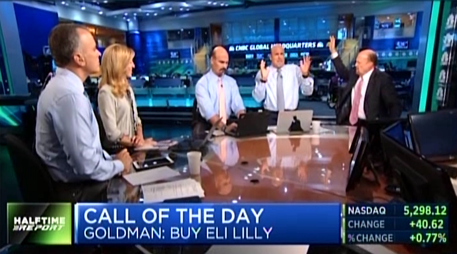 Jim Lebenthal touted oncology and suggested BMY, which a bunch of Halftime folks were bragging about buying in the low 60s recently (John Spallanzani correctly predicted it would fall to the upper 50s). Late in the program, Doc said he bought BMY calls after seeing unusual activity.