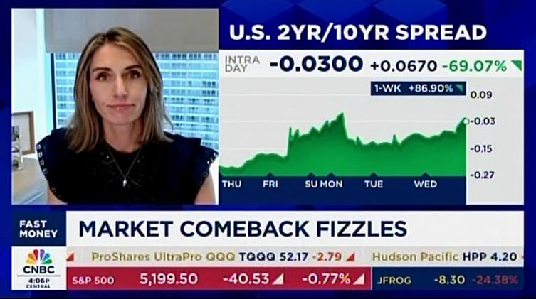 Steve pointed to the 2-year yield rising and the ISM service index and comments from Goolsbee to help convince the market that things aren't "careening out of control towards a recession." Also, "You're not seeing a blowout in high yield."