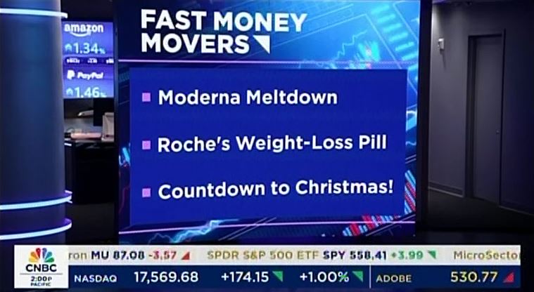 It wasn't mentioned on the show, but MRNA, which used to be touted by Weiss even when it was in the 400s, was taking a plunge Thursday.