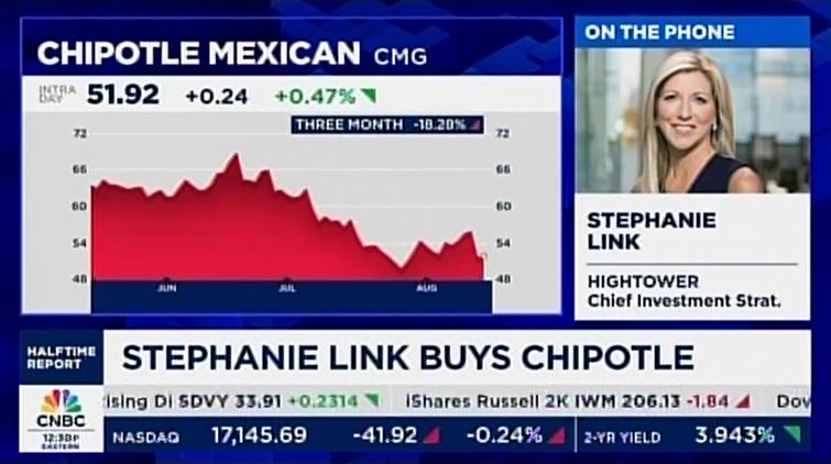 Without clarifying which month, Judge said UBER reports Tuesday, and "Stock's down near 20% in a month." (This writer is long UBER.) Weiss again told how he sold it recently out of concerns about the consumer (the lag effect from all those hikes).