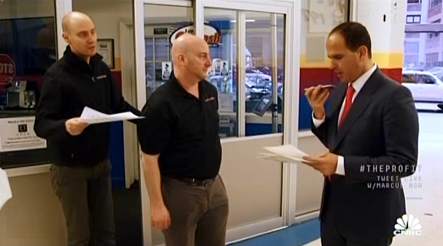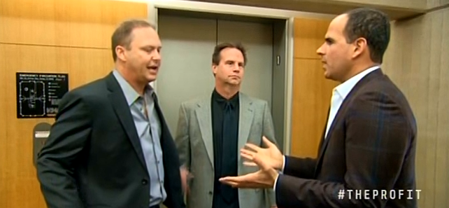 Some of the testier conversations of "The Profit" indeed can seem, to use a charitable word, "anticipated." (Dubious examples are the $240,000 warehouse transaction by Mr. Green Tea and its father-son desk confrontation, the Cash for Cars showdown with the wholesalers, and the just-what's-needed-to-make-a-point customer roundtable feedback in the Eco-Me episode.) The alternative is also a problem. The show tends to interview managers and other employees opining on the ownership without the owners present. Mostly this does feel authentic, as staffers speak while figuratively looking over their shoulder. The problem is that it's too authentic, they clearly have more choice opinions than they care to have their bosses learn once the episode airs. When rare blunt honesty occurs, it's hilarious, as disgruntled LA Dogworks technician Neil explains to Lemonis, "Man to man, I'm planning my exit," and explains that after a confrontation with boss Andrew Rosenthal that if others hadn't calmed a tense situation, "I would've probably left here in handcuffs, and Andrew in an ambulance."