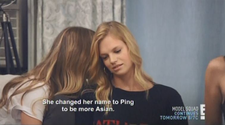 Ping is allowed ample screen time to say something controversial. At Caroline's pool party, Ping tells Ashley, apparently in reference to Caroline, "If you wanna wear the bitch filter." Bemoaning what she apparently perceives as Caroline's dislike for her, Ping shrugs, "It's not like I slept with her boyfriend." She adds, "Modeling industry can be a lot like high school. I'm too grown for it."